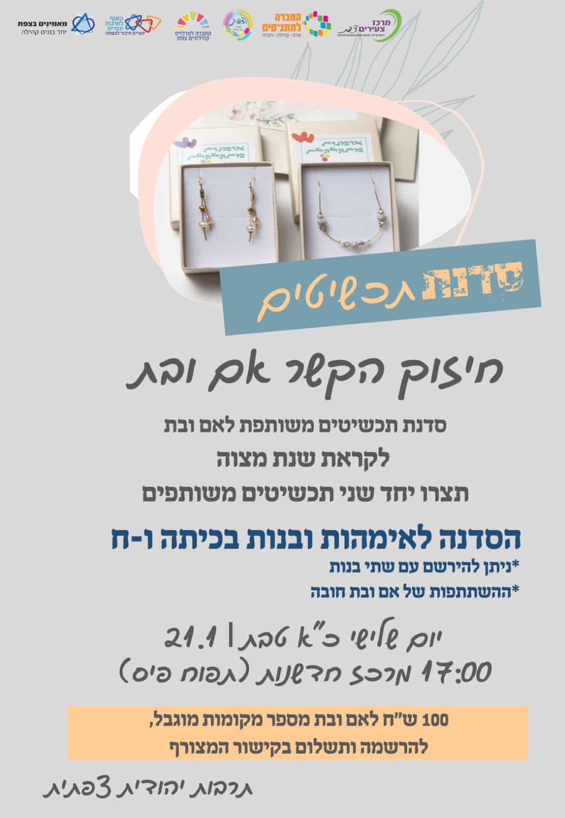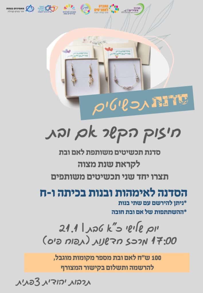 סדנת תכשיטים לאמהות ולבנות ב" שנת המצווה" כיתות ו'-ח' חובה ברישום של אם ובת!
