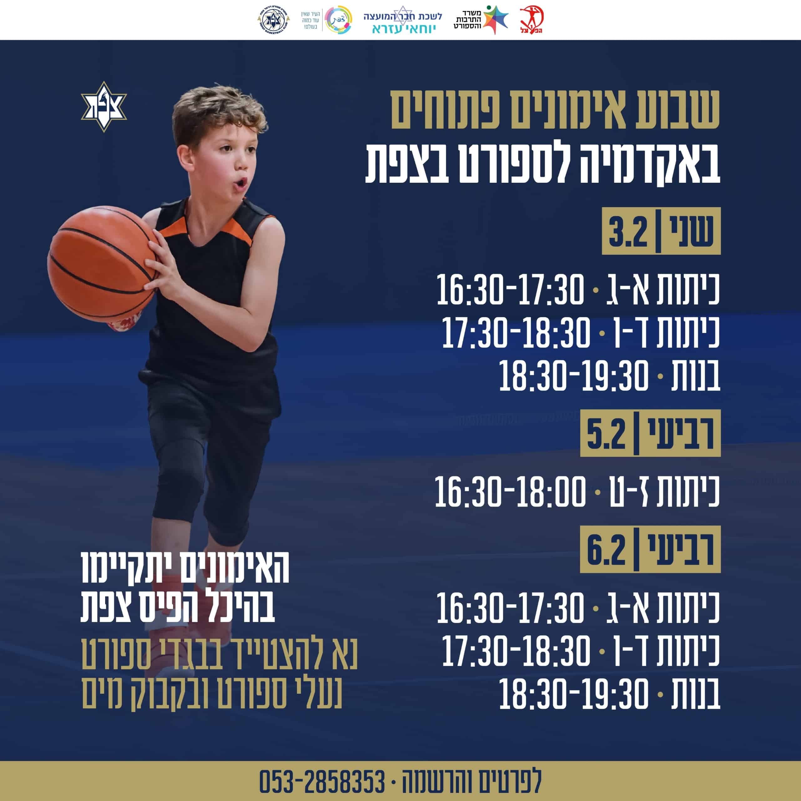 שבוע אימונים פתוחים באקדמיה לספורט בצפת - חשיפה לחוגי הכדורסל לפי גילאים