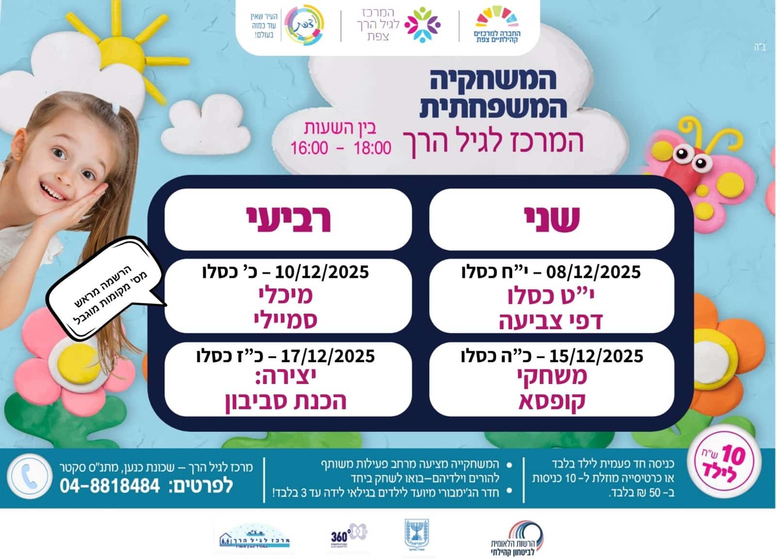 הפנינג חנוכה: המשחקייה משפחתית ומופע חיפושיות