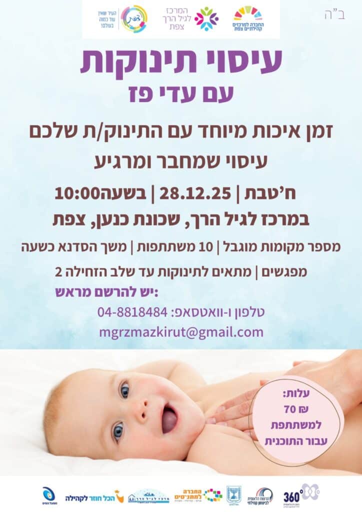 מפגש עיסוי תינוקות מחבר ומרגיע עם עדי פז להורים ותינוקות.