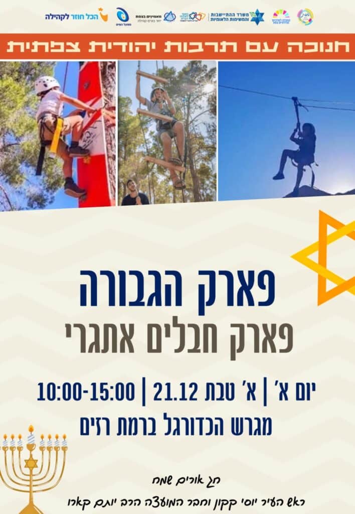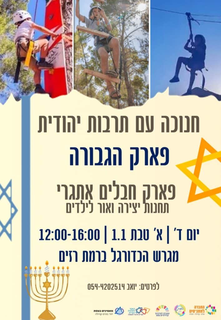 חנוכה עם תרבות יהודית, פארק חבלים אתגרי ותחנות יצירה ואור לילדים