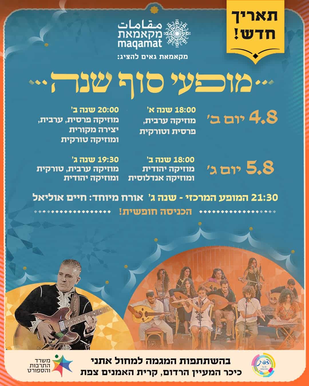 מופעי סוף שנה 04/08- מוזיקה ערבית,פרסית וטורקית 05/08- מוזיקה יהודית ואנדלוסית