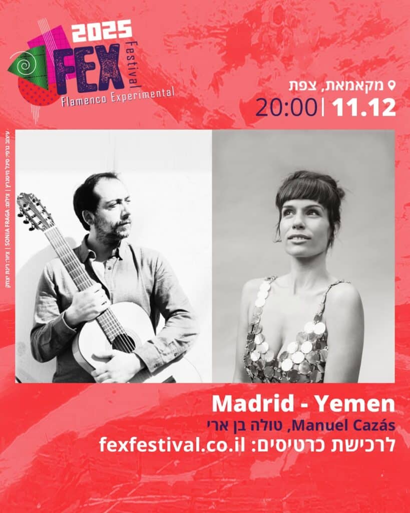 שילוב פלמנקו ספרדי ומוזיקה תימנית; סדנת היכרות חינמית ב-19:00 ומופע מרכזי ב-20:0