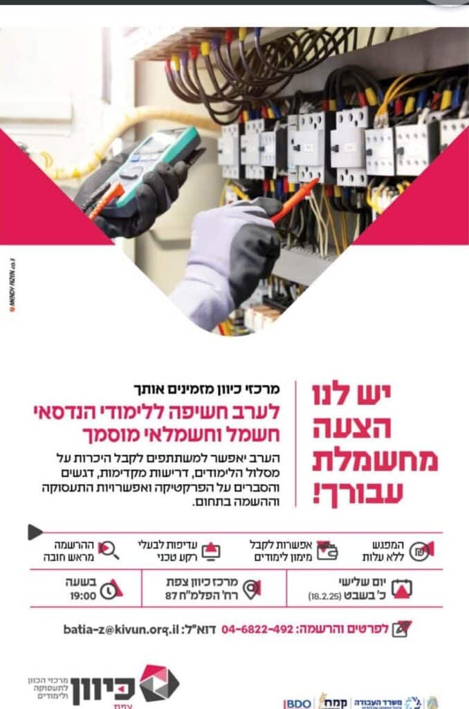 ערב חשיפה ללימודי הנדסאי חשמל וחשמלאי מוסמך
