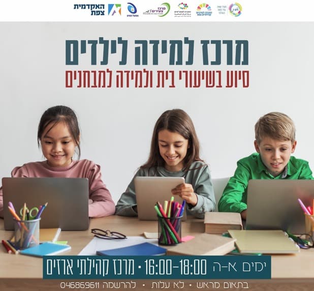 מרכז למידה לילדים בימי א-ה עם סיוע בשיעורי בית והכנה למבחנים על ידי סטודנטים.