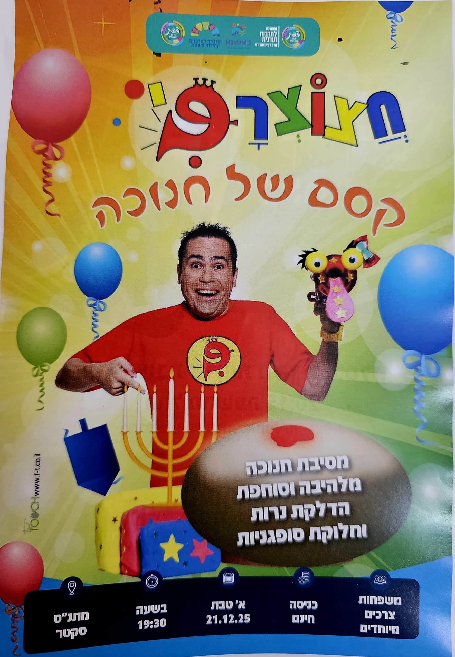 מסיבת חנוכה חינם, הדלקת נרות, סופגניות, חצוצרפי בהופעה למשפחות צרכים מיוחדים.